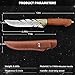【Well-Designed Appearance】Combined with unique feather style and traditional forging tech, our boning knife is sure to brighten up your kitchen. The exquisite leather sheath brings great convenience for your outdoor activities like BBQ, Camping, Hiking.