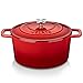 [SLEEK & ERGONOMIC DESIGN]: The elegant design is supported by a wide and solid handle and a stainless steel knob on the cover, which is very simple to operate; The ergonomic handle is easy to grasp when moving the jar. The 6-quart Dutch oven cast iron provides you with everything you need for daily cooking or displaying the feast directly from the oven to the table. Note: Please always use oven gloves or a pot rack when handling the pot. The handle will be very hot!