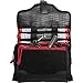 Full-length front access panel with lockable zipper pulls (lock not included) reveals two portable semi-rigid gear caddies with removable liners to allow easy clean-up and two abrasion-resistant zippered mesh pockets