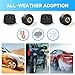 FLOW THRU DESIGN - Includes flow-thru style sensors with user replaceable CR1632 batteries. Adjust tire pressure without removing sensors (flow through design). Sensors include anti-theft feature. Sensors are light, compact and water resistant for use in all climates and weather. Easy and quick installation.