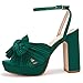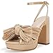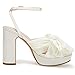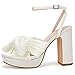 ❤ [Feature]: Pleated bow knot heels, Elevated platform, Adjustable ankle buckle strap, Skin Friendly fabric, Padded footbed, Open toe, Chunky Block heel shoes, Bridal wedding heels.