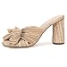 ❤ [Feature]: Pleated knot mules, Slip-on style, Skin Friendly fabric, Padded footbed, Open toe, Chunky Block heel shoes, Bridal wedding heels.