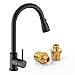 A PERFECT FIT- The pull down kitchen faucet black with simple and elegant appearance design, can coordinate beautifully with any kitchen decor, save your time to make choice. Coming with deck plate, available for one hole or three hole installation.