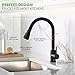 MULTI-FUNCTIONAL USE- Black kitchen faucets with pull down sprayer with an extended pull out kitchen faucet hose, can reach even deep corner for cleaning. Sink faucet black with 360 rotation spout and swivel nozzle offers full range washing access, this kitchen pull down faucet brings more convenience during everyday kitchen tasks.