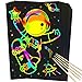 [FEATURES]: The scratch cards are thick and won’t easily tear, perfect for craft and play time, very little mess, lots of fun creative exploration and so colorful. One-of-a-kind scratch-off art kit for any occasion, or purpose; these are great for a party, craft project, camp, family fun day, playdate, art class, school project, and creative activity in the classroom.