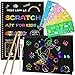 ✍️Safe & Non Toxic Material: Our magic scratch paper made of premium paper & nature wooden stylus is safe and environmentally friendly scratch party favors art. No odd flavor, no toxic powder, so kids can draw amazing creative scratch note art sheet artworks safely