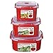 Top-rack dishwasher-safe; fridge- and freezer-safe; microwave-safe with the vent open