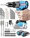 METAL CHUCK & 74PCS BITS: Upgraded 1/2" all-metal Self-locking Chuck provides superior gripping strength and better anti-drop ability, Compatible with most of the bits. This 20v power drill comes with all the accessories bits you need to get the job done and comes in a box.