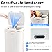 【PERFECT SIZE】This touchless trash can with a capacity of 5 gallons (20L) doesn't take a lot of room if you don't have a lot of traffic in and out of it. Perfect size for the bathroom, kitchen, bedroom. Put it between the toilet and vanity with its slim design. Great little trash can for small & narrow spaces. 9.8 inch length * 9.8 inch width * 13 inch height.