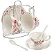 【WHAT"S INCLUDED】: 4 tea cups,4 saucers,4 teaspoons, a teapot, and a sugar bowl, a cream pitcher(Display Stand is INCLUDED)