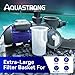 Oversized strainer basket with transparent lid cover to indicate whether the basket needs to be cleaned out of debris, leaves and particles of dust to prevent clogging