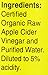 Apple Cider Vinegar is organically grown, processed and bottled in accordance with the California Organic Foods Act of 1990 and is also Kosher Certified.