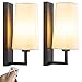 Wall sconce set of 2: The battery operated wall sconce consists of rectangular metal plate and bucket-shape white fabric lamp shade,ideal as bathroom vanity light, bedroom wall lights, fixtures for hallways and living areas. Includes 2 battery operated sconces.
