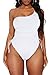 One shoulder one piece swimsuit features ruched drawstring details, great for tummy control and slimming look
