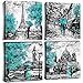 💙【Teal Paris Decor for Bedroom Size】: 16 x 16 inches x 4pcs ( 40 x 40cm x 4pcs ). Romantic Landmark Artwork Paintings, create a feeling of romance and love to your home interior decor scenery, bring some bright color and relaxation to your busy modern urban life.