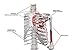 Hand Painted and number-coded muscles-origins red, in section blue