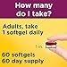 Adults take one B 12 vitamin softgel daily with water and a meal