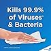 Eliminates 99.99% of many types of bacteria in 60 seconds