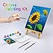 Package: 8x10 Pre Drawn Stretched Canvas, 8 Acrylic Colors, 3 Paint Brush, Pallet, Sample image.