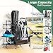 🧤 EASY ASSEMBLE and ADJUSTABLE DESIGN: This golf rack is simple to put together and comes with all the necessary tools. Its side basket, 2-tier shelves, and 3 hooks can be removed for extra storage or to save space.