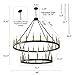 【Black Farmhouse Chandelier】Height 59.6 inches, upper wheel diameter 48 inches, lower wheel diameter 31.5 inches, equipped with 78.74 inch adjustable chain. This large chandelier looks very beautiful on high ceilings and is suitable for flat, sloping, sloping, and arched ceilings.