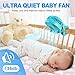 【Baby Friendly】- ①Soft wind: Switch between 3 wind speeds with one click, the breeze can better care for your baby's health. ②Fan cover specially designed to protect curious little fingers with <5mm spacing for peace of mind. ③Brushless motor design, the noise is lower than 25dB, allowing your baby to improve sleep quality.