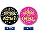 Package includes: you can get 26 pieces of pin buttons in total, 2 types, 25 pieces of "Birthday Squad", 1 piece of "Birthday Girl", enough quantity that you can share it with your friends