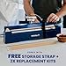 FREE KIT & STORAGE STRAP: Never worry about the unit wearing out. Each sealer includes TWO replacement kits, each has 1 replacement pad, 1 strip and an extra fuse. It comes with a velcro strap so you can easily store it in a closed, locked position.