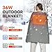 【WATERPROOF & SHOULDER BUCKLE DESIGN】Our battery operated blanket heated is made of high-quality waterproof fabric and polyester filling, which effectively prevents heat loss and keeps you warm even in rainy or windy weather. The electric throw blanket also features a special shoulder buckle design that keeps it from slipping off your shoulders, making it more convenient for outdoor use.
