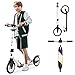 【Height Adjustable】Supports 3.9FT - 6.2FT height riders. The handlebar is adjustable to 3 height options (33”, 35”, 38”), The perfect family scooter, the same scooter can be used by parents and daughter and son riding together.