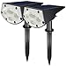 Made of durable ABS plastic endowed with superior IP67 waterproof level solar spotlights are water resistant and heat-resistant to withstand all kinds of terrible weather