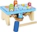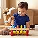 Product 2: CLASSIC POUNDING TOY: The Deluxe Pounding Bench Wooden Toy with Mallet is a classic pounding toy with a design twist. As the colorful, non-removable pegs on the bench go up and down, they play peekaboo, taking turns showing their friendly smiles.