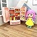House floors and activities include: Polly's bedroom; Paxton's room with crib and rocking horse; bathroom with a fun tub; a living room with TV, table and chairs, music/stereo for dancing (stick Polly doll on dance floor that spins); and more