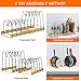 【Easy to Assemble in 3 Methods】Horizontal on one side; vertical on one side; vertical on both sides; The sizes and direction of this pan organizer rack for cabinet can be adjusted according to your needs; giving you more flexibility in organizing your pots and pans; Please measure your cabinet size and carefully read the dimensions of our item before purchase to make sure it fits your cabinet.