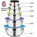 🍄 [EASY MEASURE & NON-SLIP] Quarts and liters are clearly engraved inside the bowls and fade proof, meet the demand of different measurement. A silicone non-slip bottom keeps the stainless bowls steady on counter tops when beating and whisking. Users can mix, beat, or whisk ingredients with little mess as the wide, deep bowls have high walls to prevent splatter.