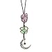 【Unique Handmade Ornament】Natural Raw Amethyst and Green Fluorite, Each one features a crescent moon, a star, and a unique combination of crystal car accessories.
