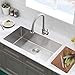 📝【Stainless Steel Undermount Kitchen Sink】: The 28 Inch Undermount kitchen sink is constructed with solid T304 stainless steel for amazing strength and durability. It is anti-rust and anti-corrosion, very long-lasting. Deep 28 inch undermount sink design allows you to accommodate stack of dishes, pans and pots, covering up dirty dishes before washing them all.