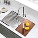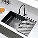 ❣️【Workstation Sink】:The 25 inch undermount black workstation kitchen sink is designed with ledges at the front and rear to provide tracks for cutting boards and other accessories, such as a solid wood cutting board, and roll-up dish drying rack.Spacious and deep single bowl ledge workstation kitchen sink provides more space for washing large items without splashing water.
