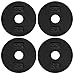 π SET OF 4 (each 2.5 lbs., TOTAL of 10 lbs.) - Made of solid cast iron with a machined center hole and coated in a durable, black baked enamel finish. These 1-inch standard weight plates have a 1-inch center hole to accommodate 1-inch standard bars or dumbbell handles.