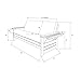 Futon dimensions: 83”L x 33. 5”W x 32. 5”H. Sleeping dimensions: 73”L x 44”W x 17. 5”H. Weight limit: 600 lb. Carton dimensions: 46”L x 37”W x 17” H. Net Weight: 103. 5 lb. Gross weight: 116 lb.