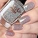 Looking for a spectacular thermal nail polish, look no further. This thermal nail polish changes from a dark brown (cold) to an orangie pink (warm) and is loaded with stunning pink to gold iridescent flakies to give your nails a unique look.