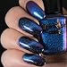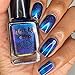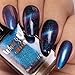 Step up your nail art designs using this fantastic blue base magnetic nail polish that has teal to purple Cat Eye Effect and green to blue iridescent duochrome shimmer giving your nails a stunning look.