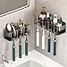 Toothbrush and Toothpaste Organization- this wall mounted toothbrush holder is great for your bathroom to keep your toothbrush and toothpaste, it have 4 toothbrush hangers, 4 tooth cup hanger, and 3 compartments for toothpastes.