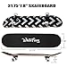 Solid&Durable : 7 layers Canadian maple deck,31.75"*7.88", offers perfect balance between toughness and weight. Maximum load weight up to 220 pounds, equipped with 5 inch magnesium alloy trucks. Reliable for beginner and skilled