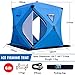 ❄️❄️🎣🎣🎣【Spacious Space】: -- Unfold size: 73 x 73 x 66 inch/ 185 x 185 x 168 cm. Interior size: 58 x 58 x 66 inch/ 148 x 148 x 168 cm. Ice fishing tent, with ample room & 23.7 square feet of fishable area, is large enough to accommodate 2 people and approve convenience movement. The wide-bottom design provides more fishable area than other shelters on the market. Have a nice fishing or camping trip with your family and friends.
