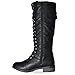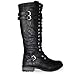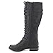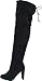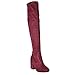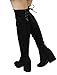 Wild Diva faux suede boot featuring a low chunky block heel, almond toe design, lace-up closure and has an over the knee fit.