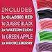 Six delicious flavors; red, black, green apple, watermelon, blueberry, and huckleberry.