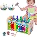 ▶ 7-IN-1 Montessori Toys for Toddlers: The wooden hammering pounding toy is designed with 7 fun activities to play: fishing game, whack-a-mole game, musical xylophone play game, worms catching game, sliding maze game, gear spinning game and clock learning game. A must-have multifunction toy to keep baby occupied and learn from playing.