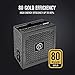 80 PLUS Gold certified, with 90% (115VAC) / 92% (220VAC~240VAC) efficiency or higher under typical loads