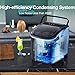 [Fast Condensing Fan & Low Noise] This portable ice maker countertop is equipped with a new condensing technology and a silent fan, which enables the water to quickly condense and freeze into ice. It operates at a low noise level of less than 45 decibels, making it a quiet addition to your home that won't disturb your daily life or your family's. Even if you want a glass of ice-cold whiskey late at night, you don't have to worry about disturbing your partner's sleep.